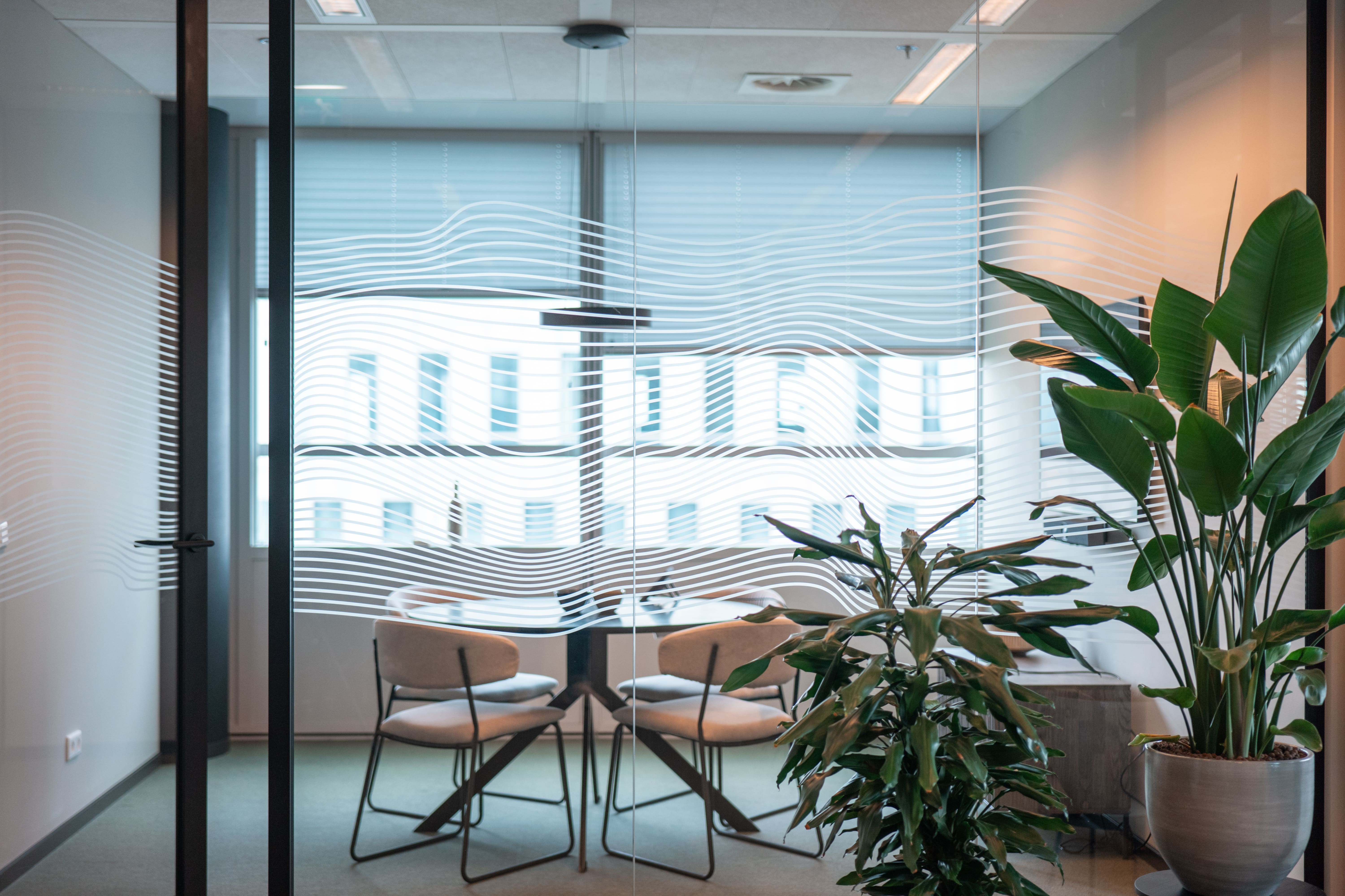 Voor Ydentic hebben we de kantoor- en vergaderruimtes voorzien van full-color visuals, freesletters en privacyfolie. Zo heeft elke ruimte de moderne uitstraling die past bij het bedrijf. Voor de vergaderruimtes hebben we unieke patronen geplot en geplakt die zorgen voor privacy zonder dat je het zicht helemaal belemmert.